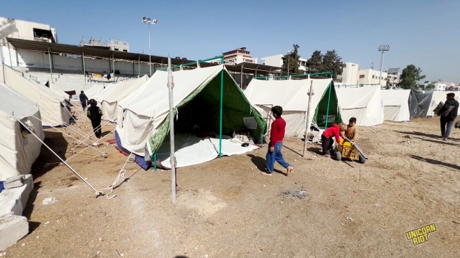 Several displaced Palestinian women, some staying at a converted Yarmouk Stadium in Gaza City, shared their stories with Unicorn Riot. For more from Palestine, see our trove of coverage here.