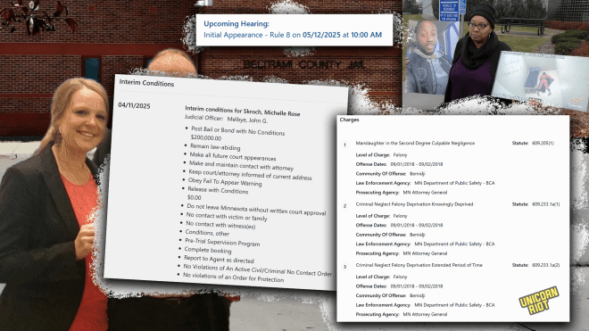 Charged with second degree manslaughter and two felony counts of criminal neglect, the 37-year-old Skroch appeared next to her attorney Tyler Bliss at her first court date, a remote hearing on April 11, 2025 in front of Judge John Melbye, a Ninth Judicial District Court judge for Beltrami County. Representing the state was Zuri Balmakund, Assistant Attorney General in the Office of the Minnesota Attorney General’s Criminal Division — the attorney general’s office filed the charges against Skroch on March 7, 2025.