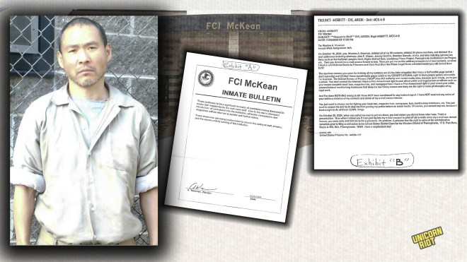 “You just want to silence me for fighting your book ban, magazine ban, newspaper ban, months-long lockdowns, etc. You just want to censor me and try to stop me from posting my police-torture on social media.”Anson Chi, in a letter (Exhibit B) to Warden Newman of FCI McKean in November 2024